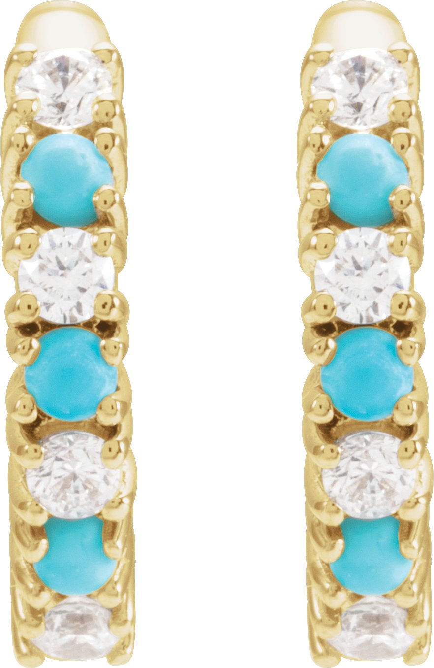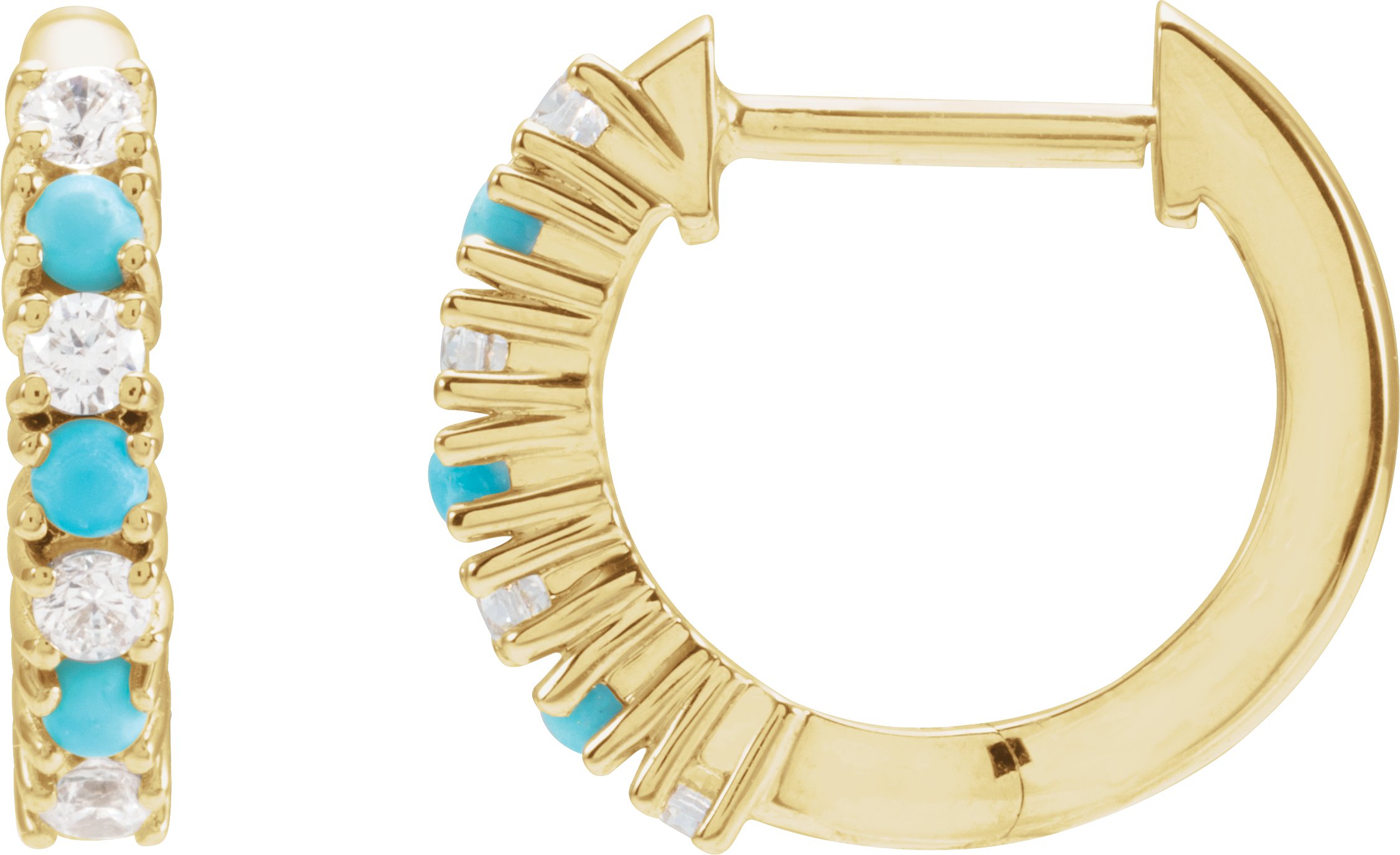 14K Yellow Natural Turquoise & 1/3 CTW Natural Diamond Hoop Earrings