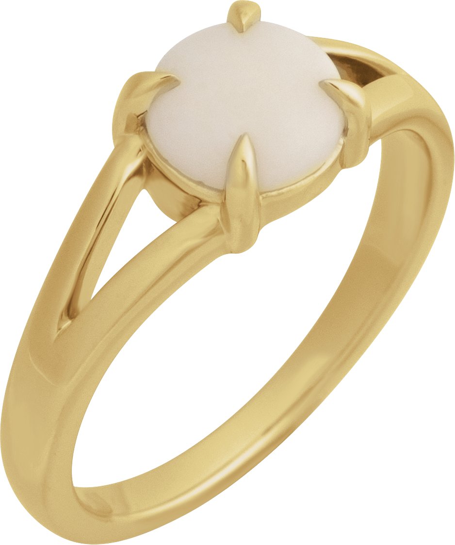 14K Yellow Natural White Opal Cabochon Ring