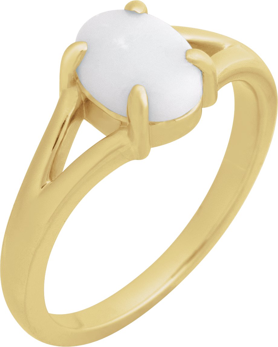 14K Yellow Natural White Opal Cabochon Ring