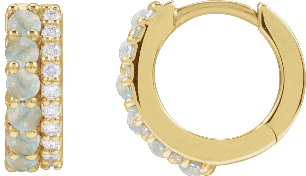 14K Yellow Natural White Opal & 1/8 CTW Natural Diamond Huggie Hoop Earrings