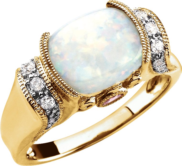 14K Yellow Opal, Pink Tourmaline & 1/6 CTW Diamond Ring