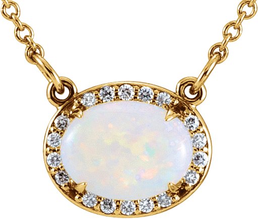 14K Yellow Opal & .07 CTW Diamond Halo Style 16 1/2 inch Necklace