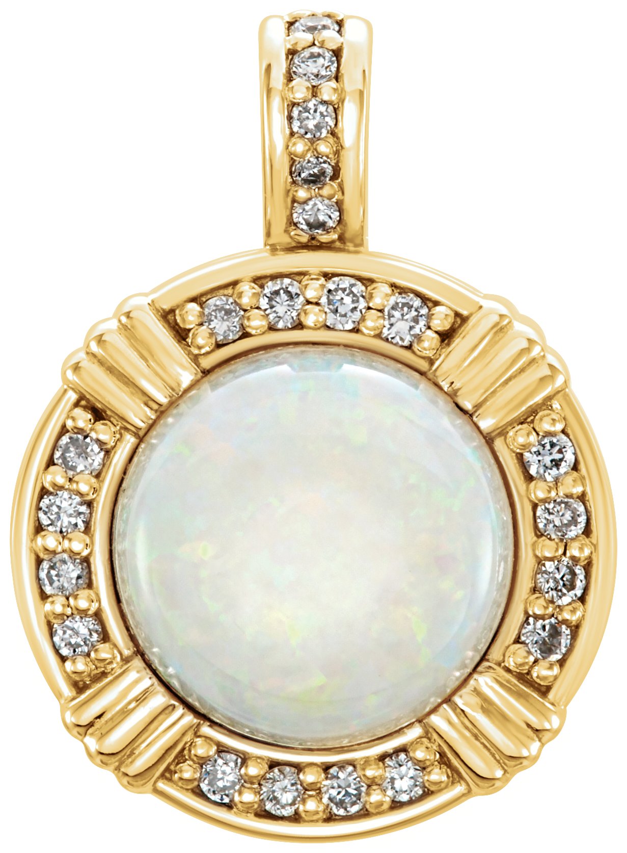 14K Yellow Opal and .10 CTW Diamond Pendant