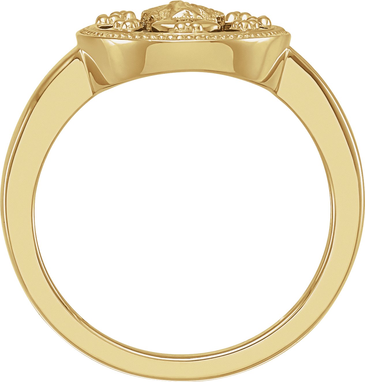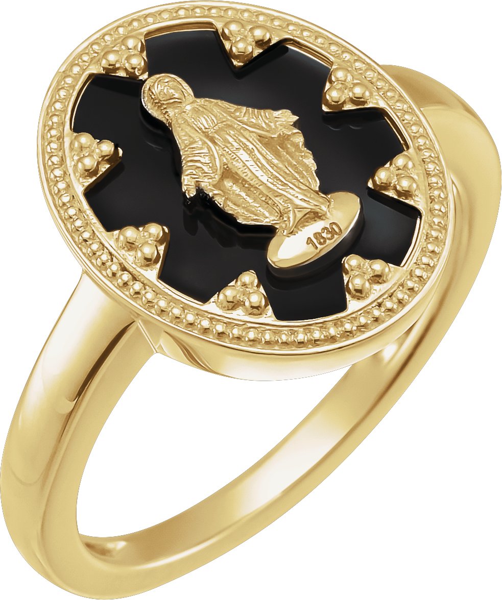 14K Yellow Oval Black Enamel Miraculous Medal Ring