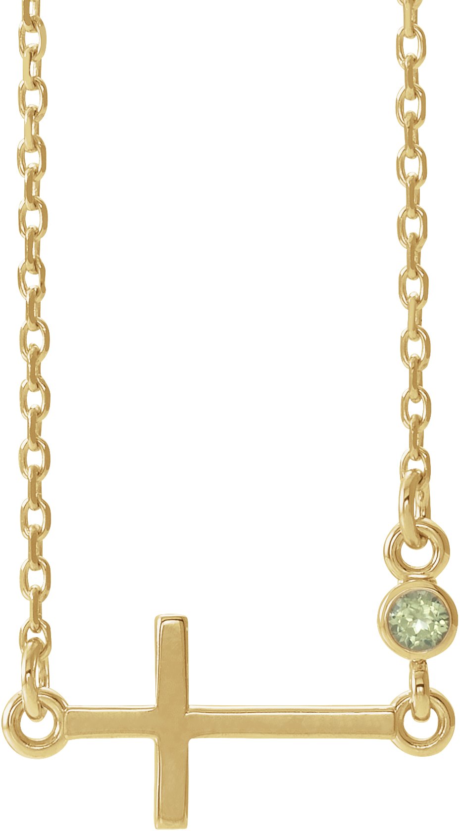 14K Yellow Peridot Sideways Accented Cross 16 18" Necklace Ref. 13269714