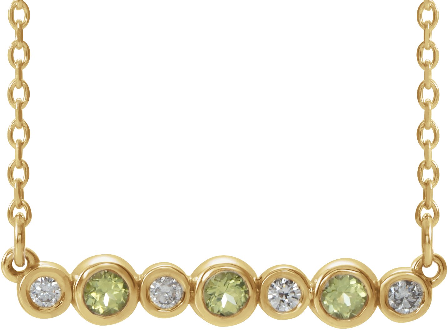 14K Yellow Peridot & .08 CTW Diamond Bezel Set Bar 16 18" Necklace Ref. 14204937