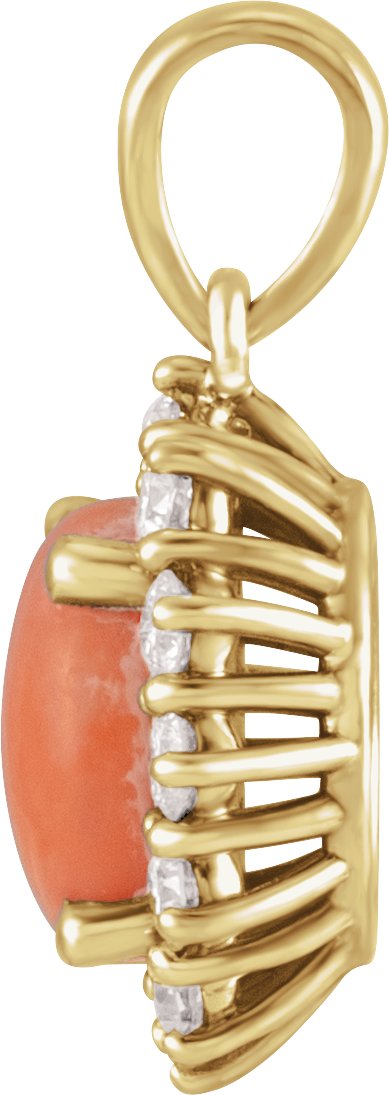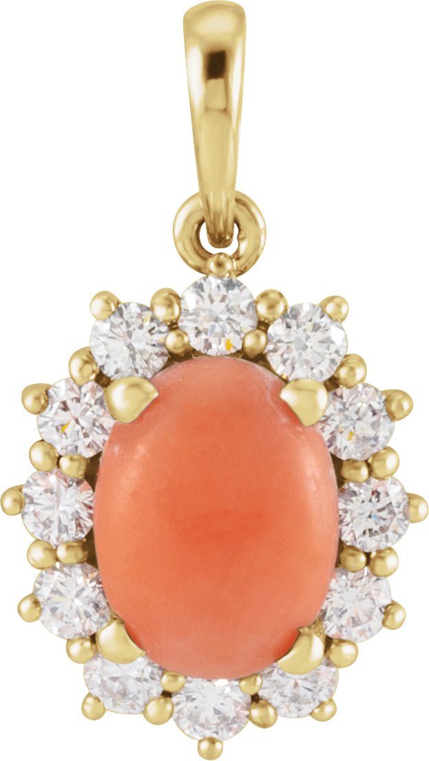 14K Yellow Pink Coral & 1/3 CTW Diamond Pendant