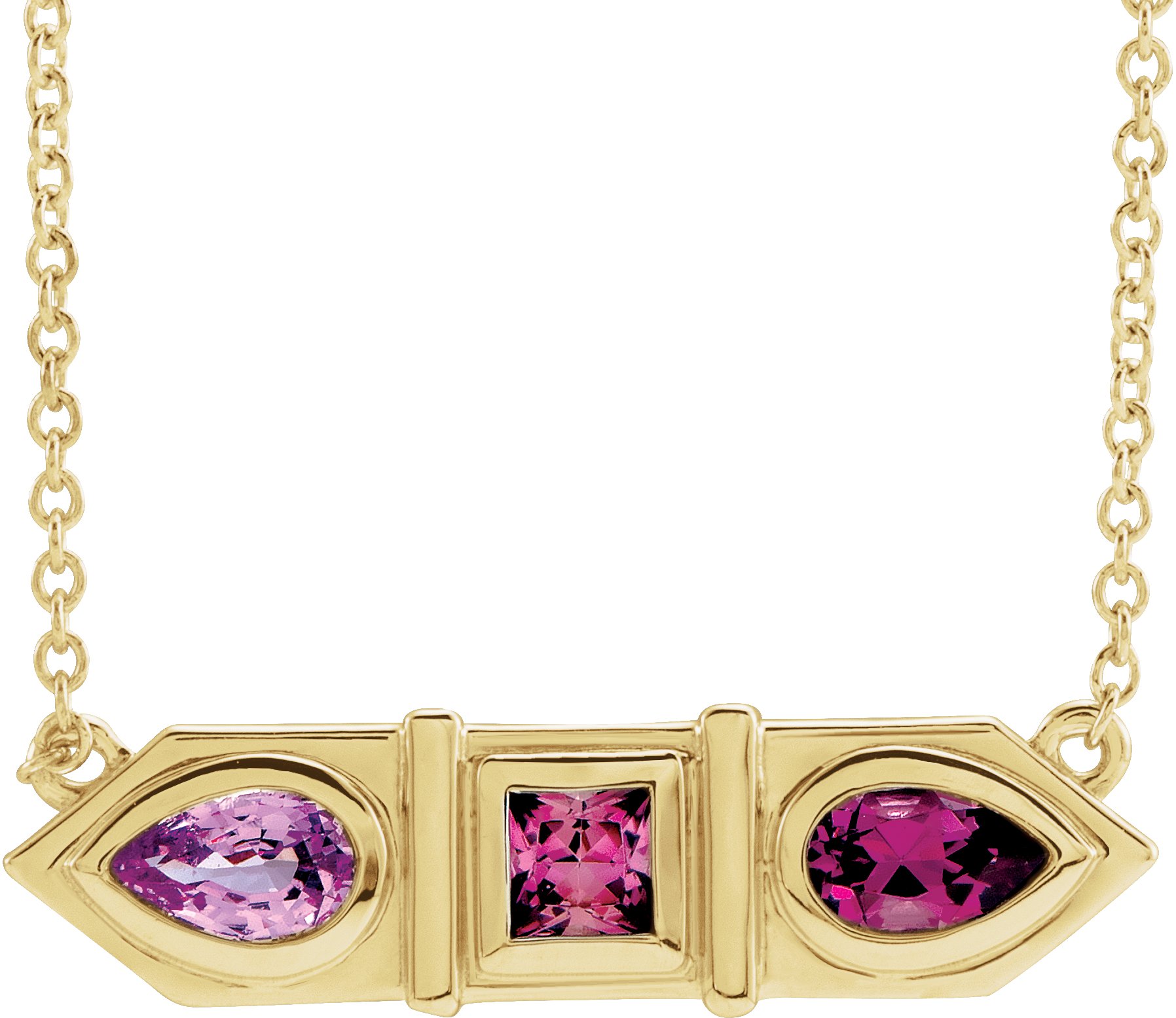 14K Yellow Pink Multi Gemstone Geometric Bar 18 inch Necklace