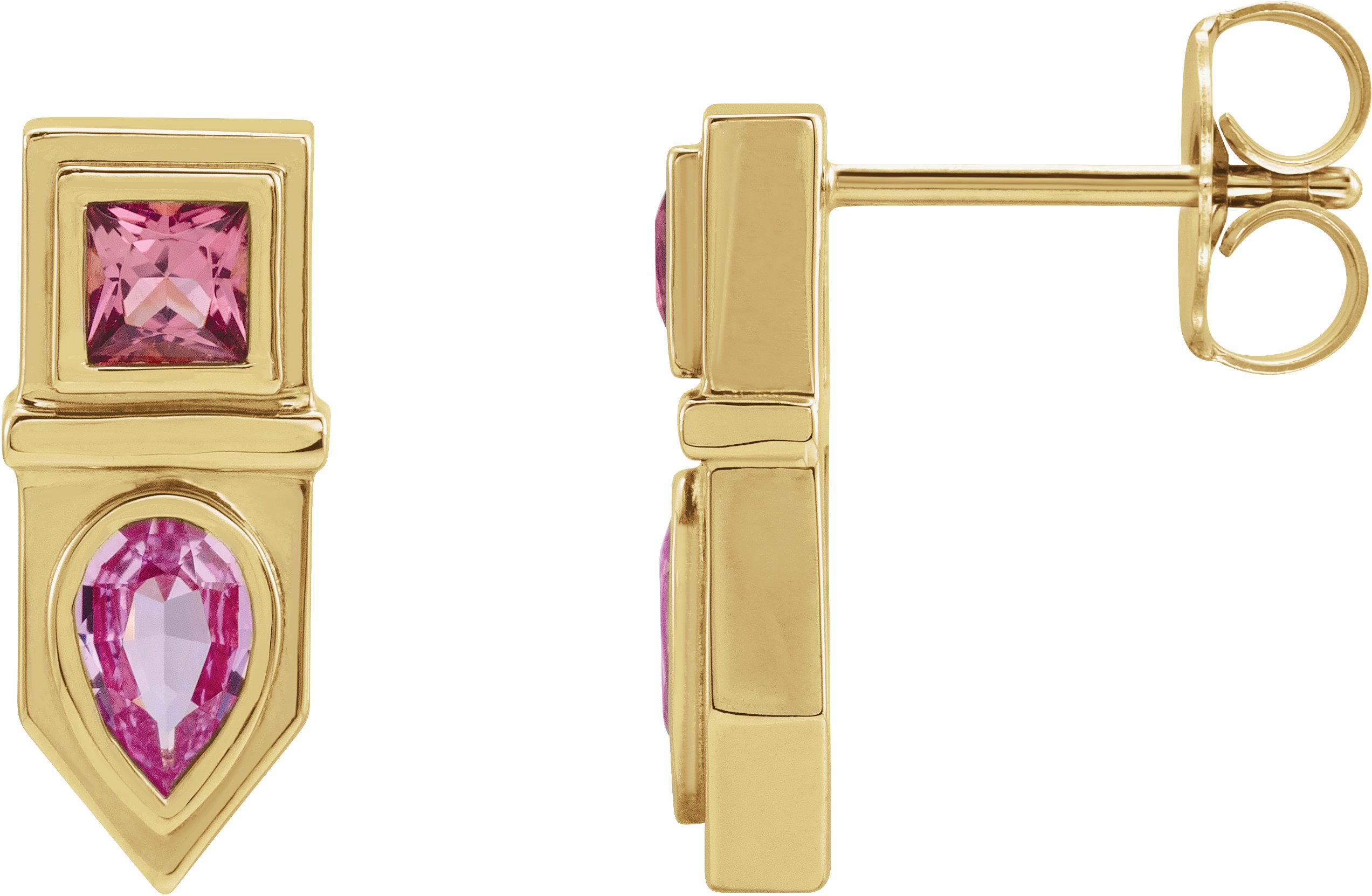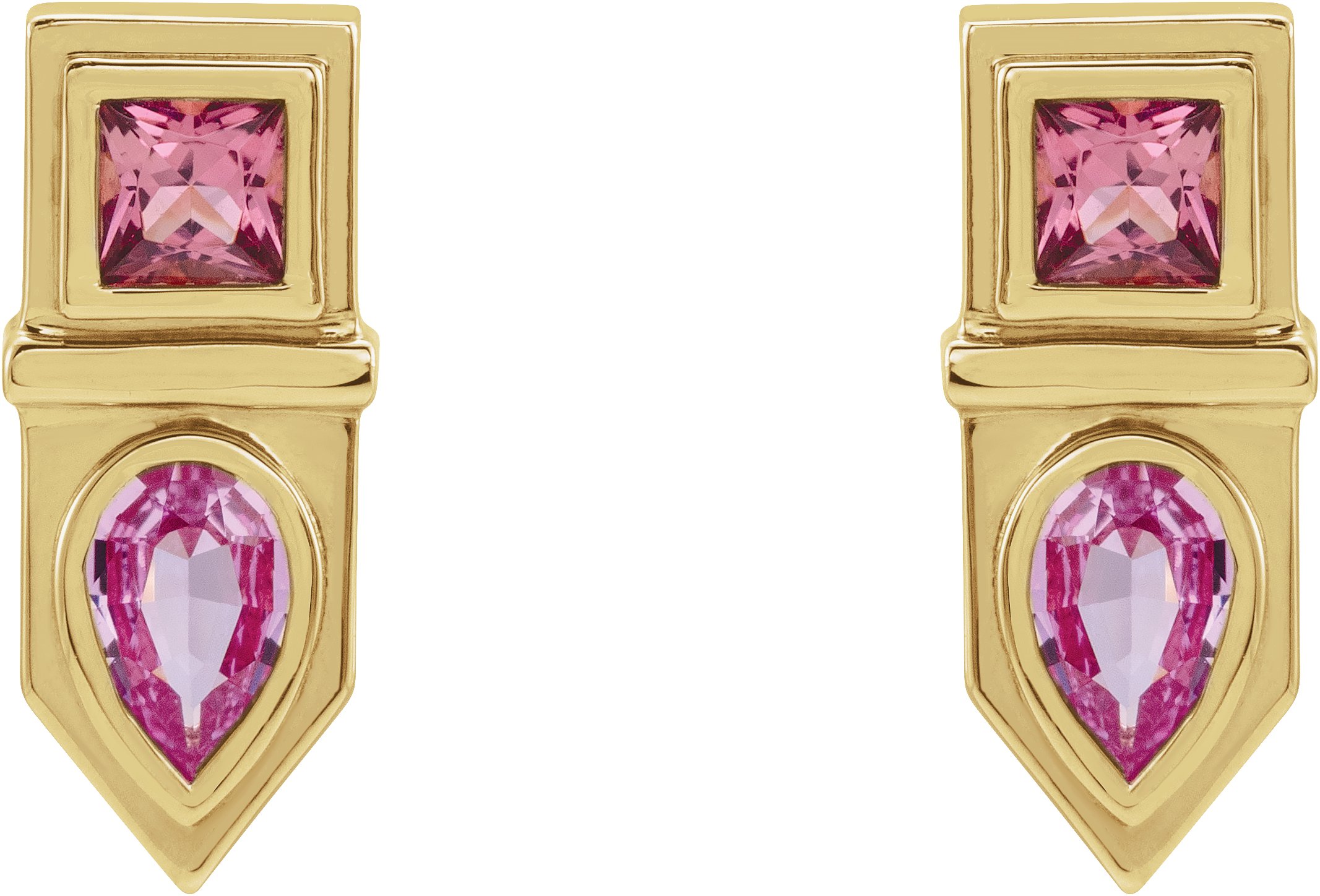 14K Yellow Pink Multi Gemstone Geometric Bar Drop Earrings