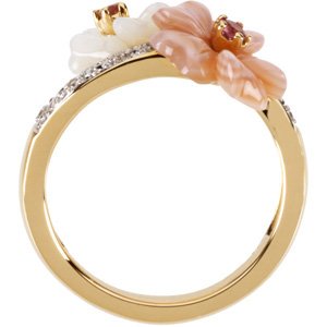 14K Yellow Pink Tourmaline, Mother Of Pearl and .04 CTW Diamond Ring