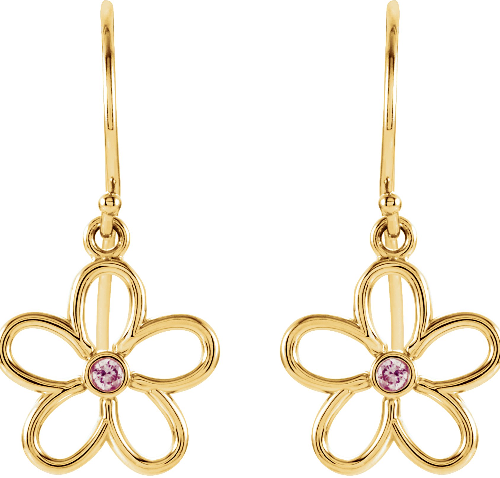 14K Yellow Pink Tourmaline Flower Earrings