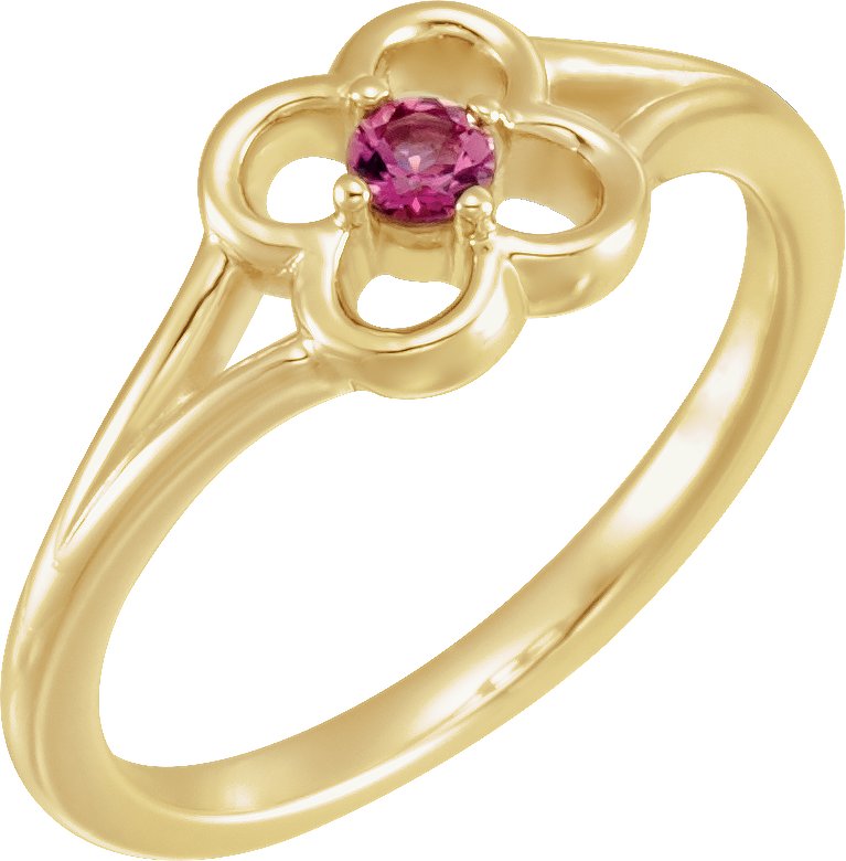 14K Yellow Pink Tourmaline Flower Youth Ring