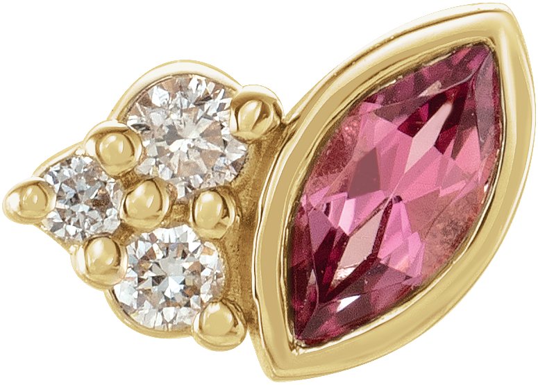 14K Yellow Pink Tourmaline and .03 CTW Diamond Right Earring