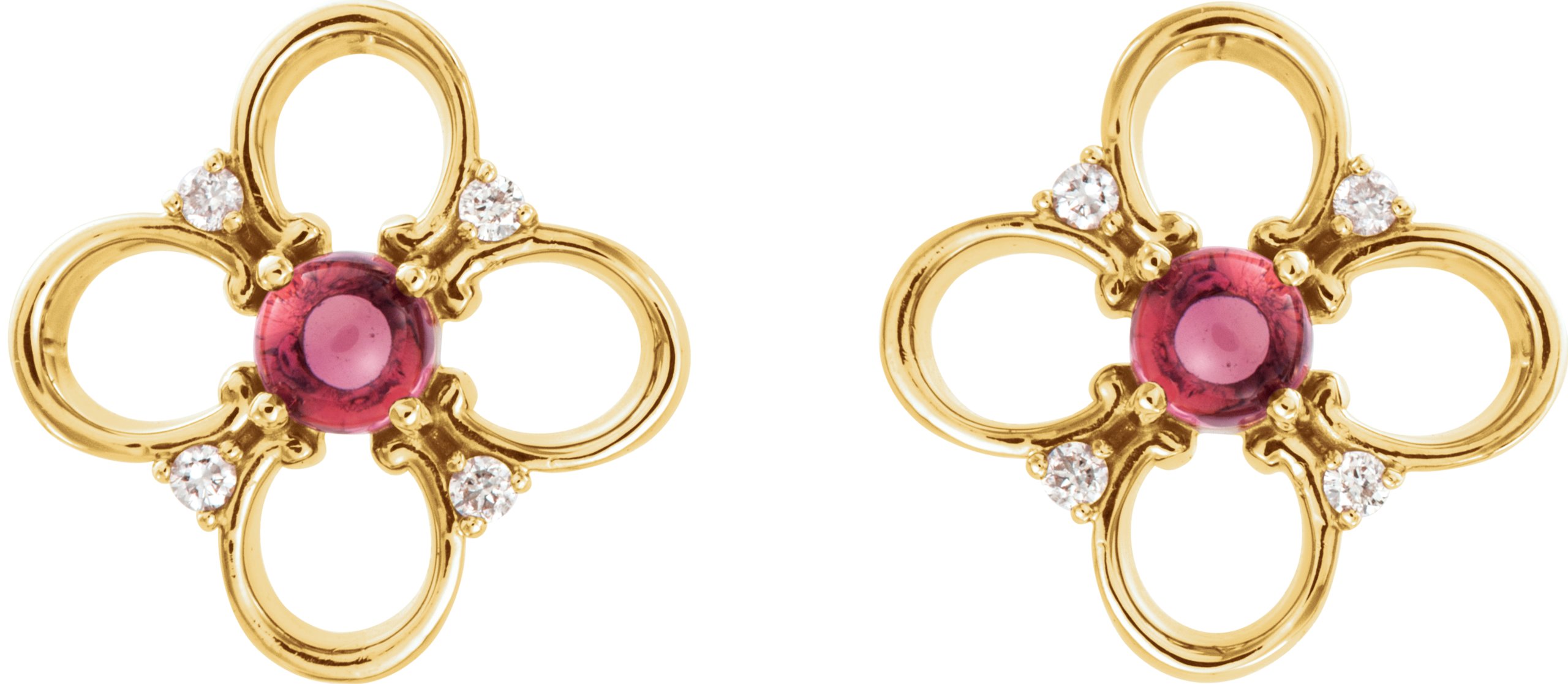 14K Yellow Pink Tourmaline and .04 CTW Diamond Earrings