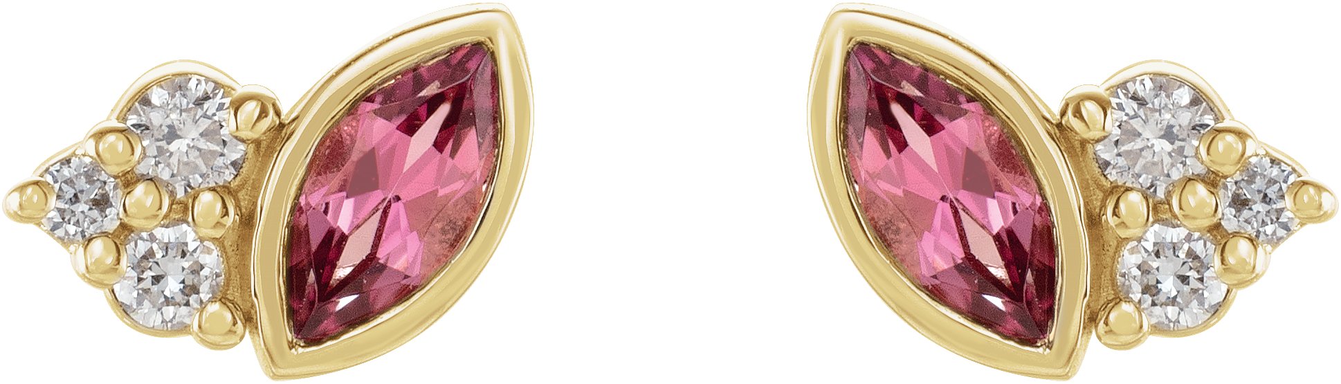 14K Yellow Pink Tourmaline & .05 CTW Diamond Earrings