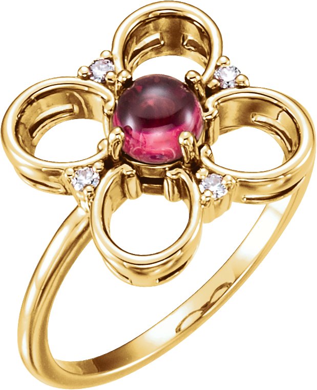 Description: Gen Pink Tourmaline And .06 CTW Diamond Clover Ring