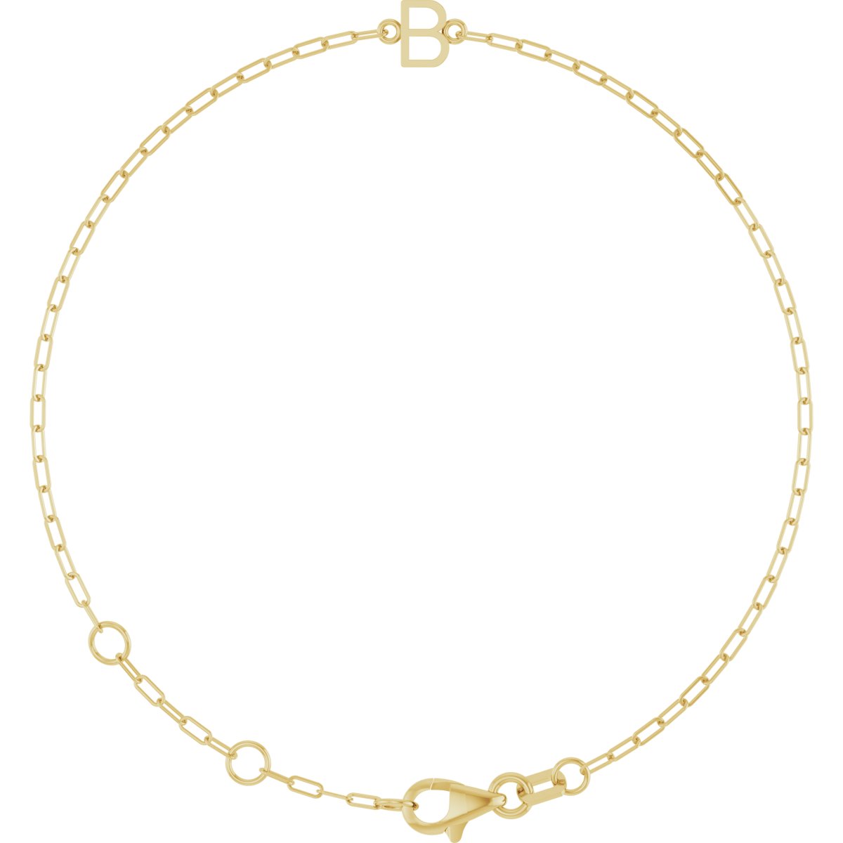 14K Yellow Sans Serif Initial B 6 1/2-7 1/2" Bracelet