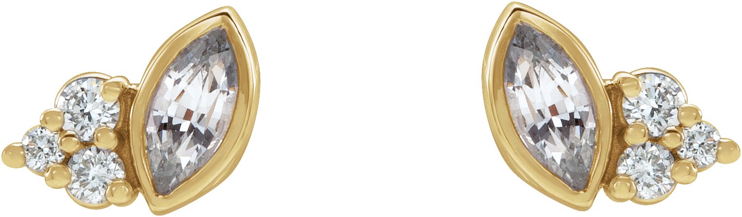 Description: Genuine White Sapphire And .05 Ctw Diamond Earrings