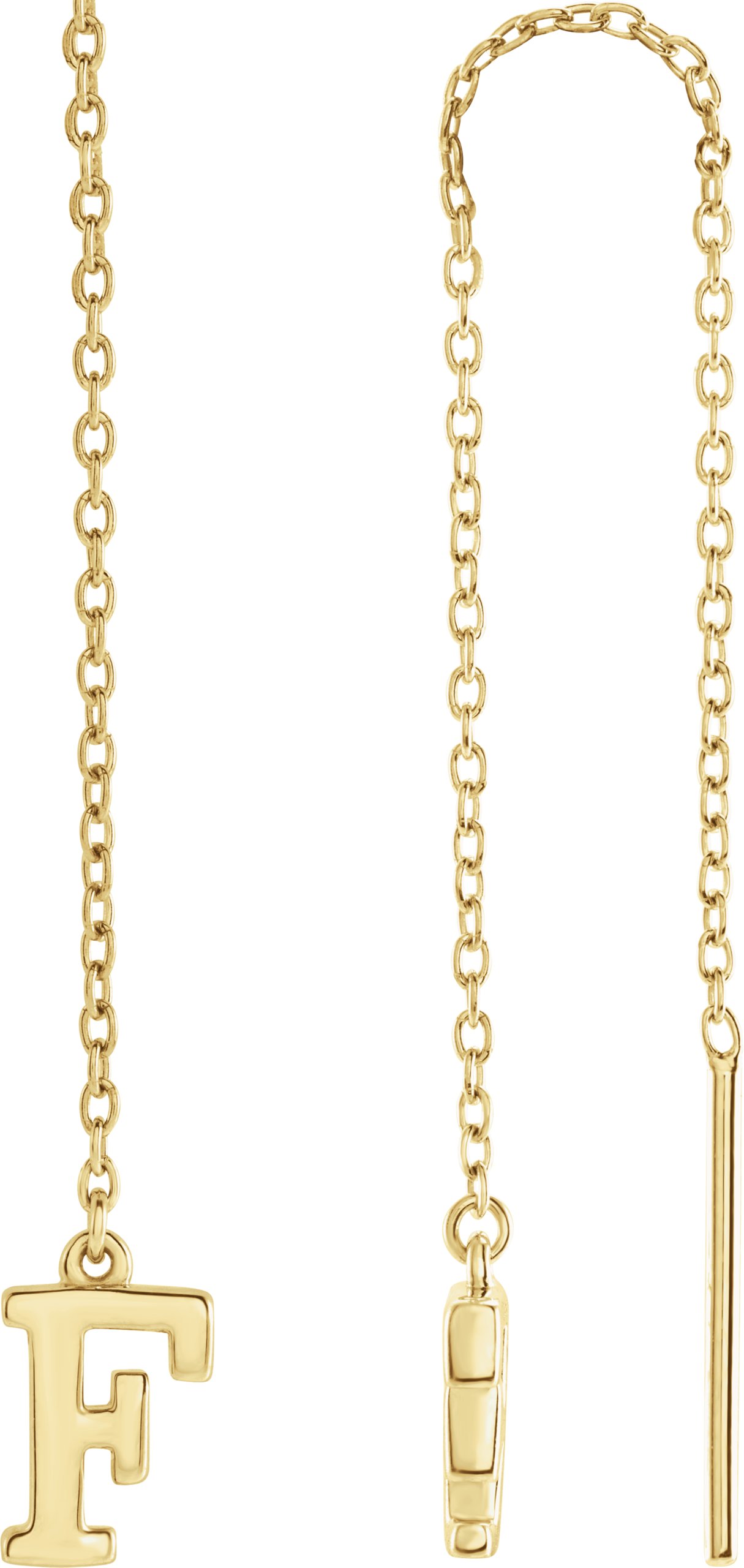 14K Yellow Single Initial F Chain Earring