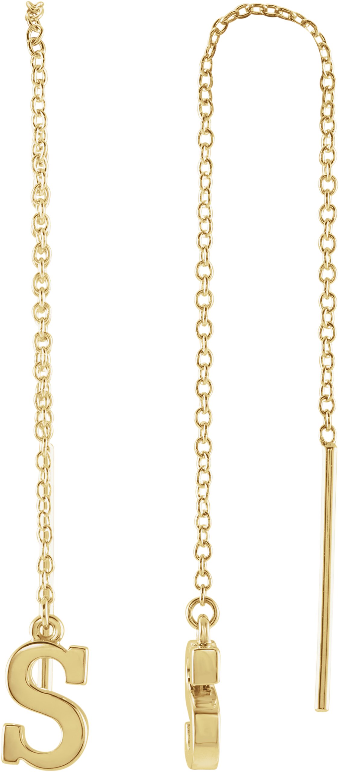 14K Yellow Single Initial S Chain Earring