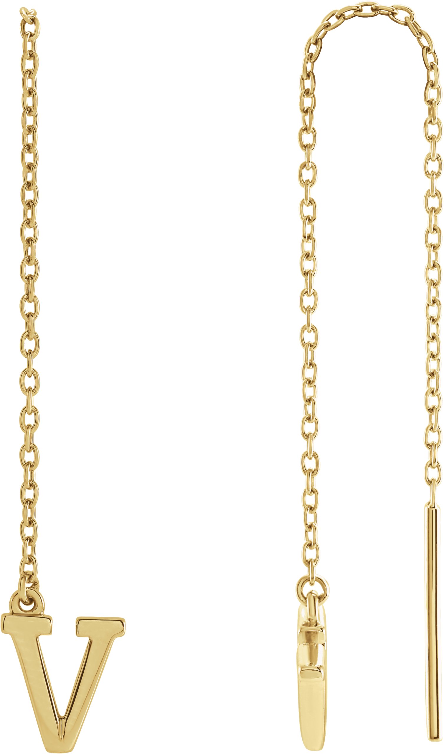 14K Yellow Single Initial V Chain Earring