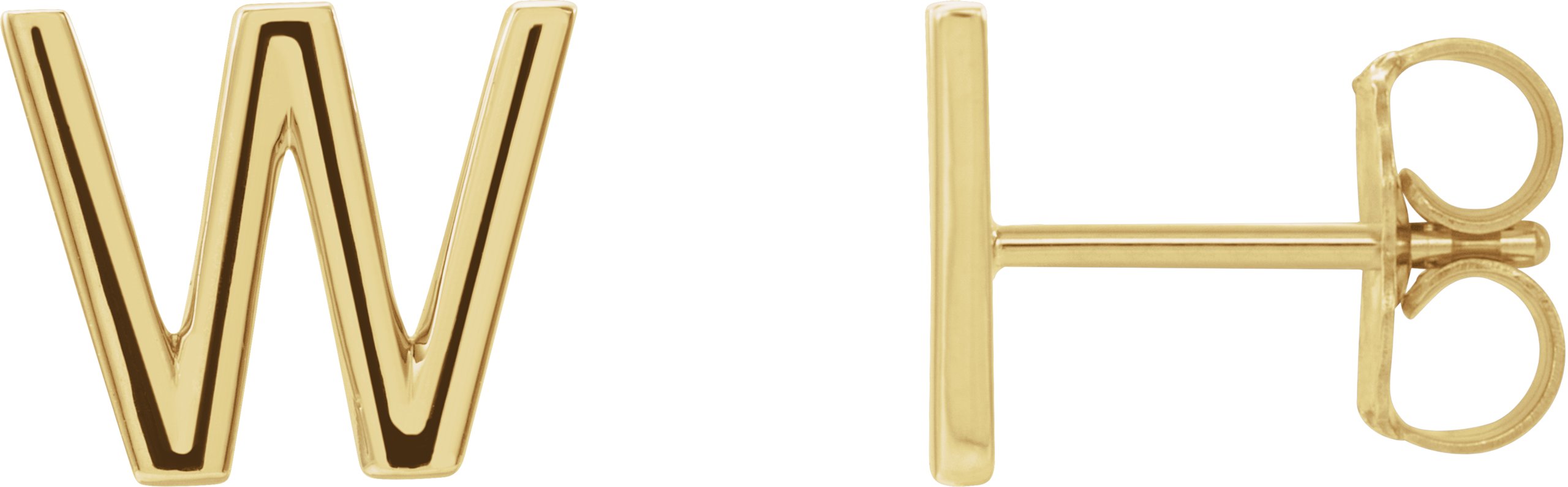 14K Yellow Single Initial W Earring