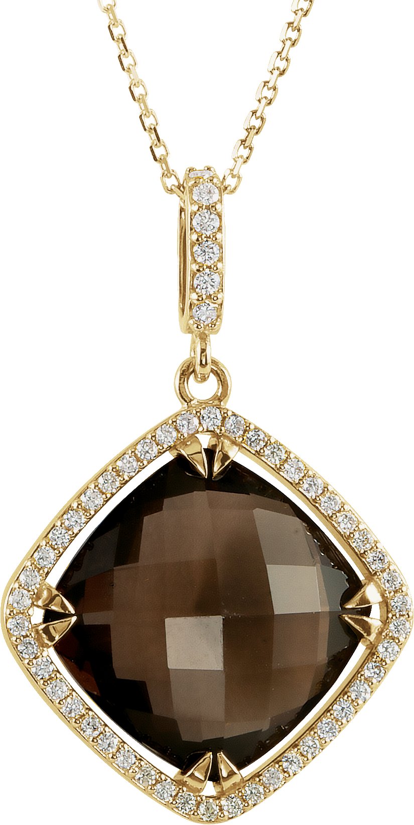 14K Yellow Smoky Quartz and .33 CTW Diamond Halo Style 18 inch Necklace