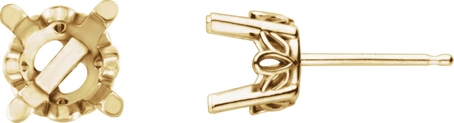 14K Yellow Swiss Blue Topaz 4 Prong Scroll Setting Stud Earrings