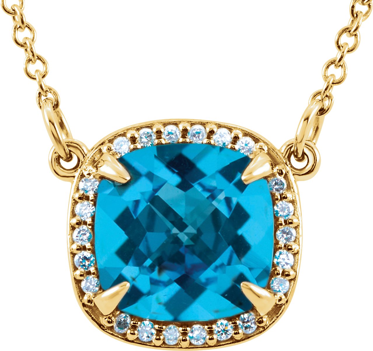 14K Yellow Swiss Blue Topaz & .06 CTW Diamond 16 inch Necklace