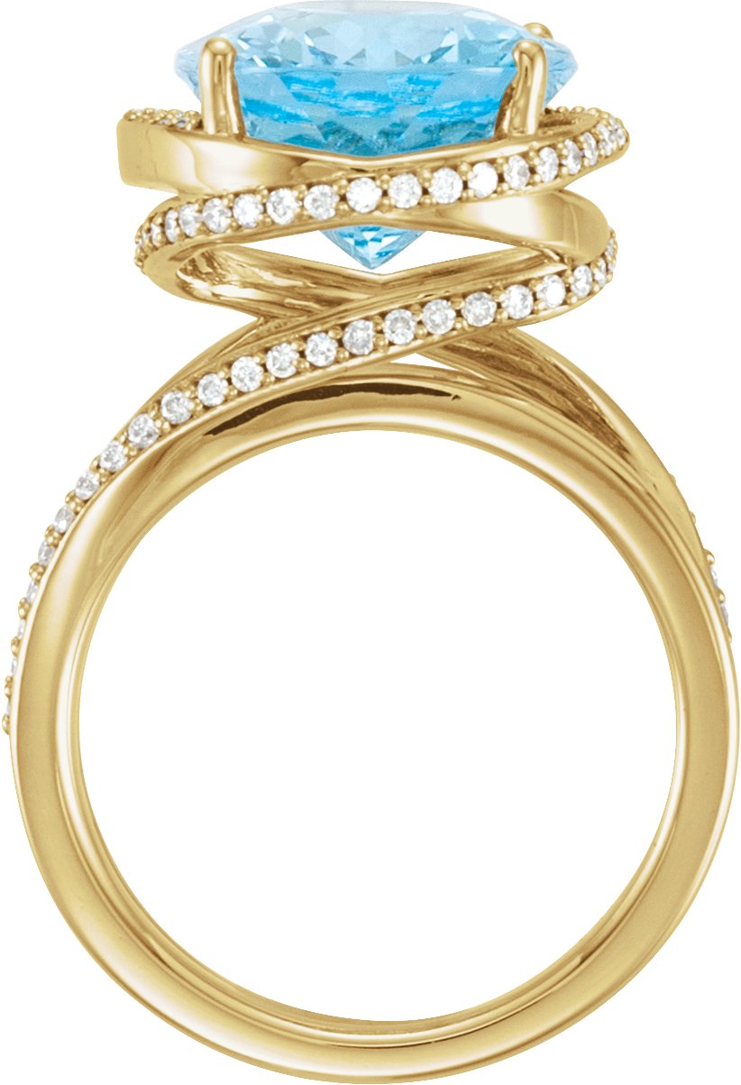 14K Yellow Swiss Blue Topaz and .50 CTW Diamond Spiral Ring