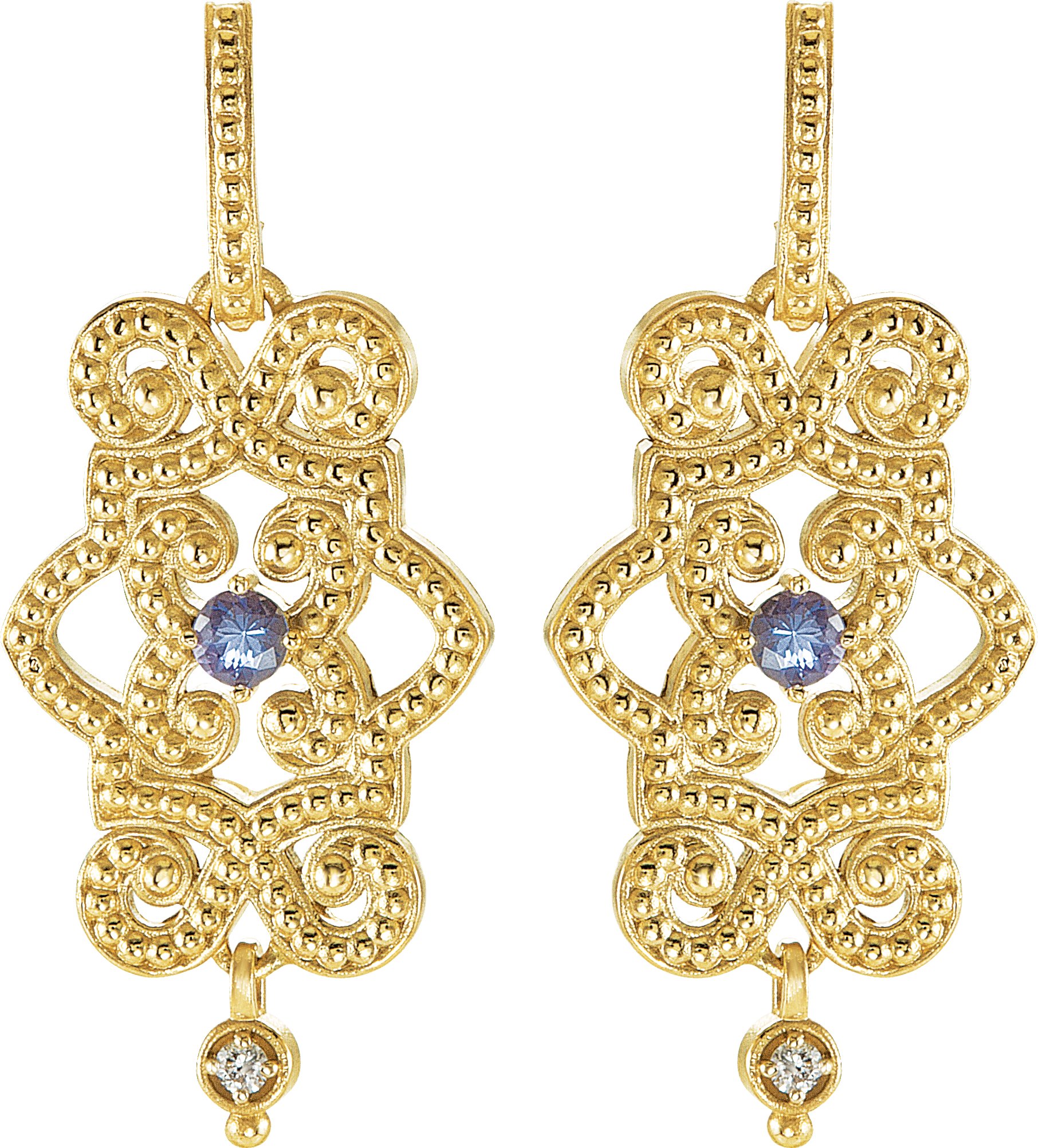 14K Yellow Tanzanite and .03 CTW Diamond Granulated Design Dangle Earrings