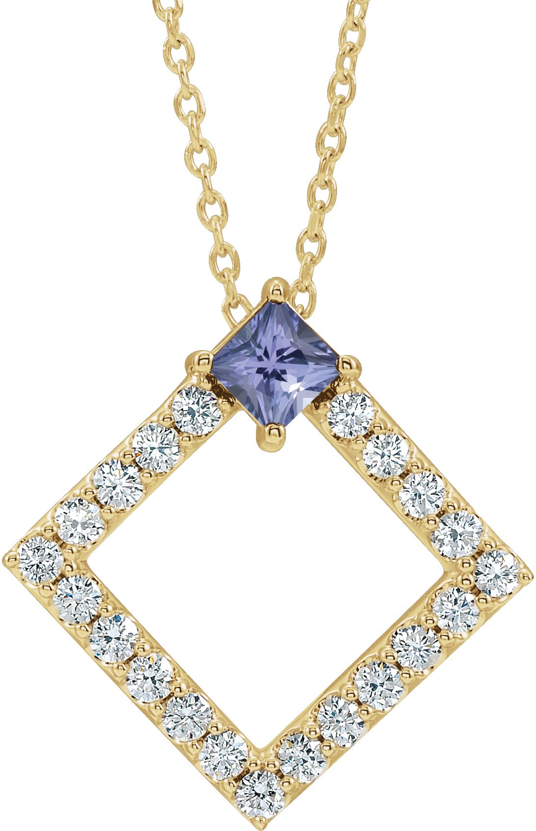 14K Yellow Tanzanite and .375 CTW Diamond 16 18 inch Necklace