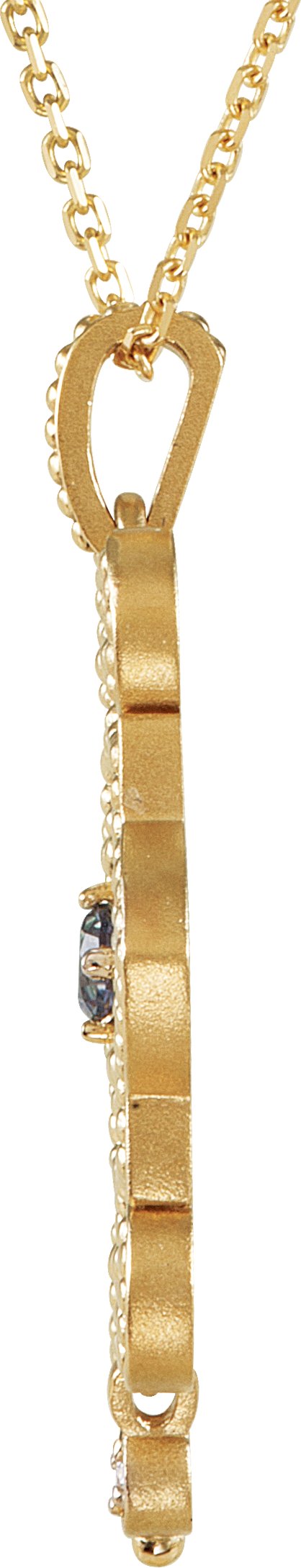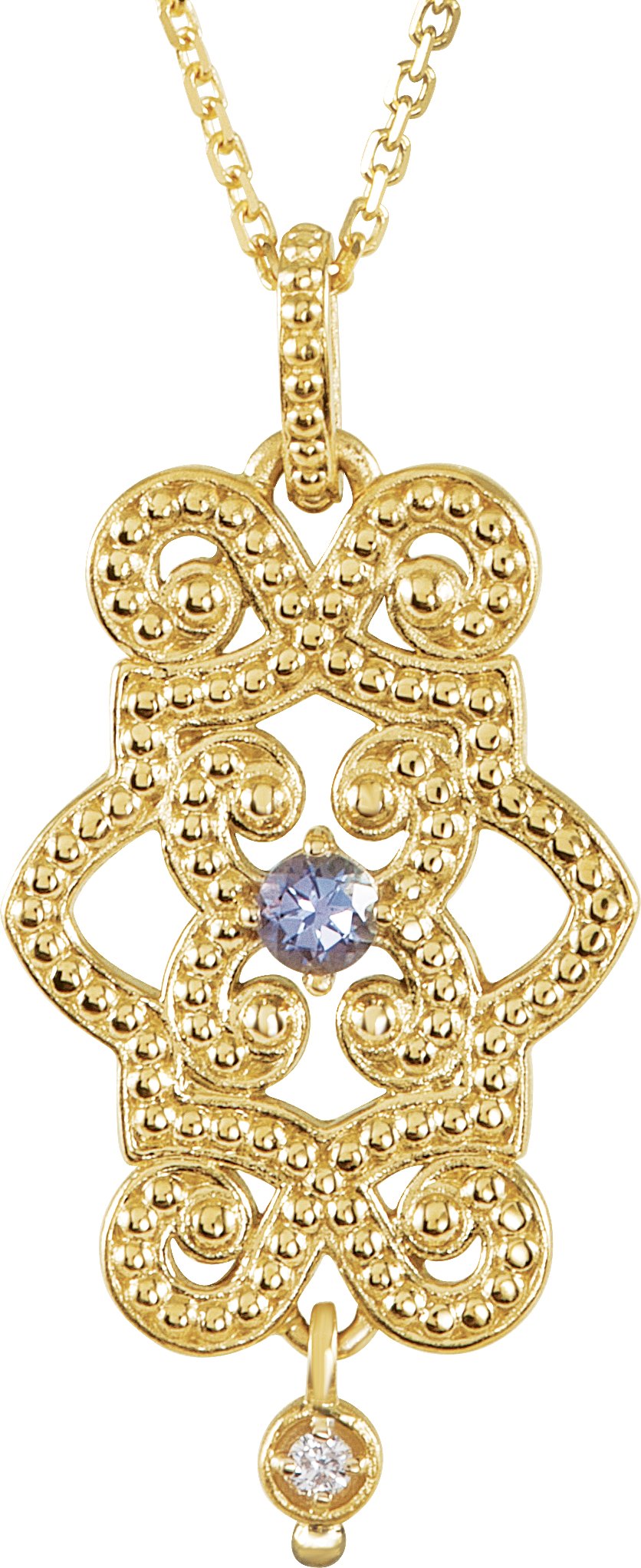 14K Yellow Tanzanite and Diamond Granulated Design 18 inch Necklace