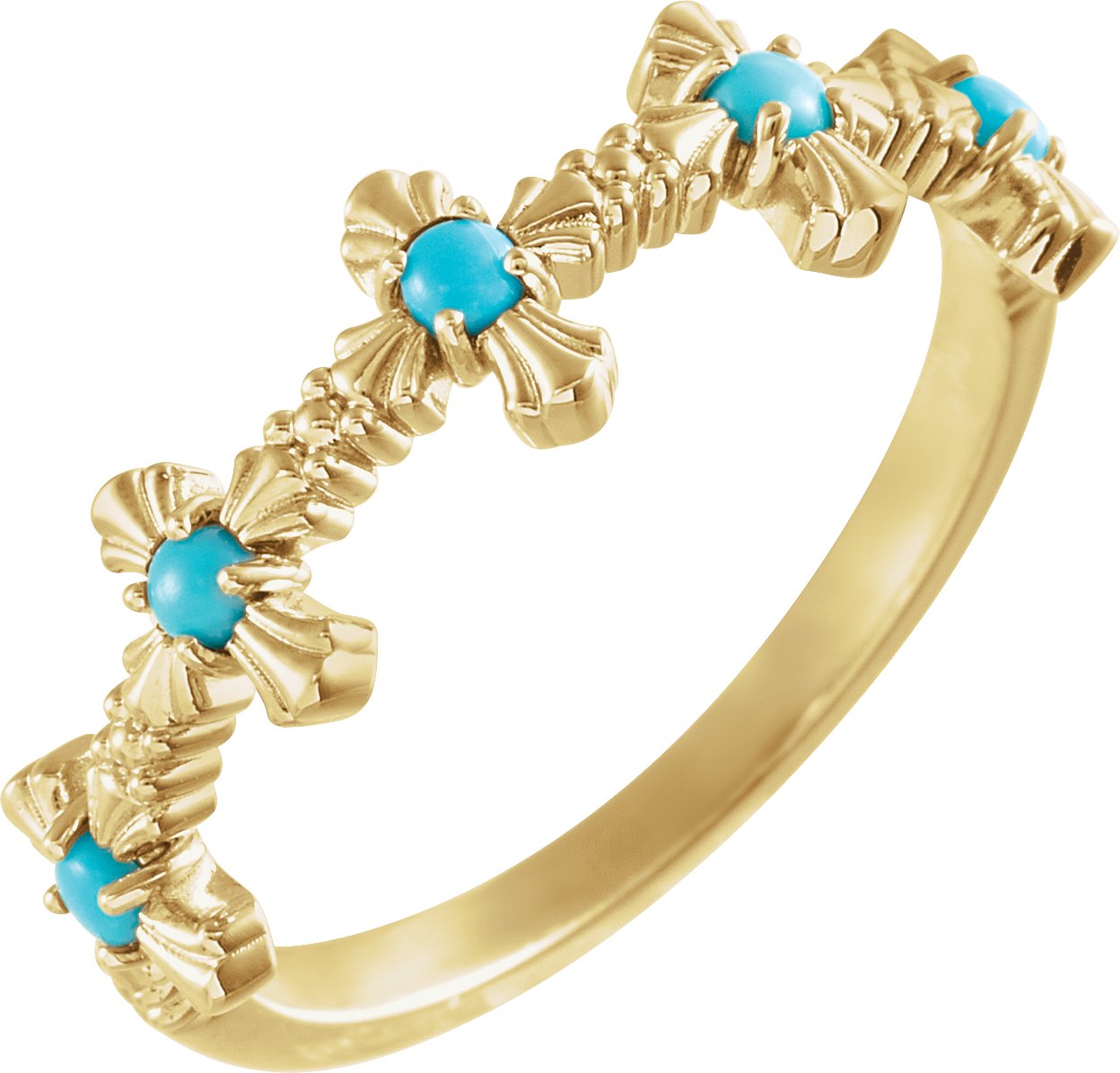 14K Yellow Turquoise Cross Ring