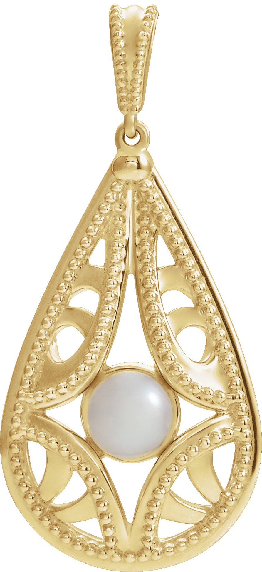 14K Yellow Vintage Inspired Freshwater Cultured Pearl Pendant