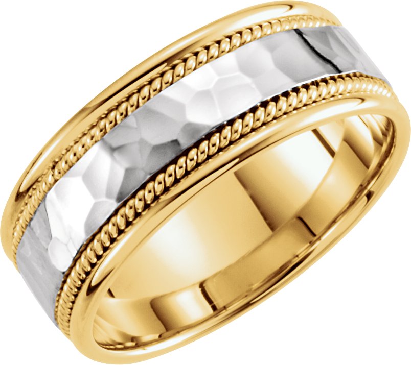 14K Yellow White 8 mm Rope Design Band with Hammer Finish Size 5