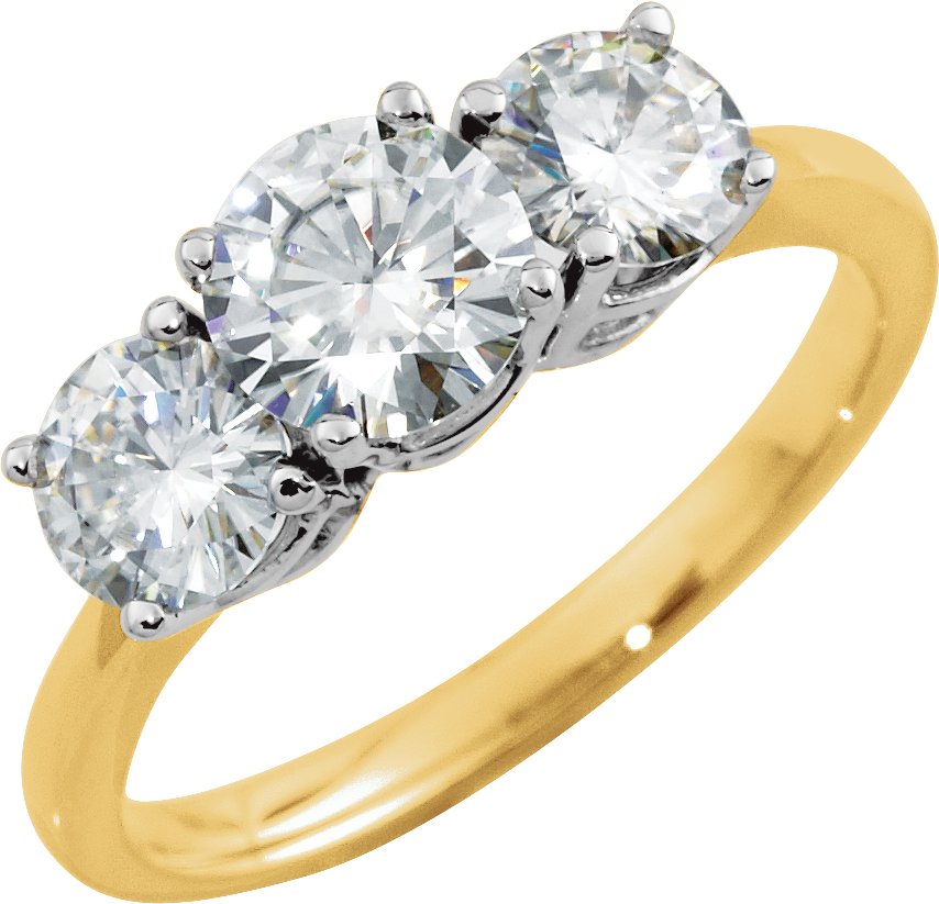 14K Yellow/White 6 mm Round Forever One™ Moissanite Three-Stone Anniversary Band
