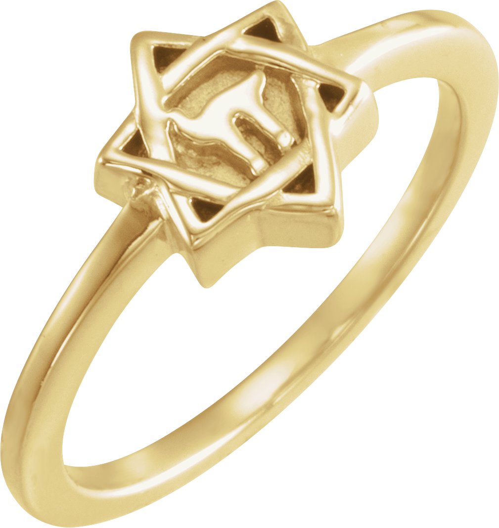 14KY Star of David with Chai Ring Size 7 Ref 664472