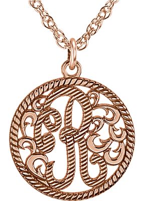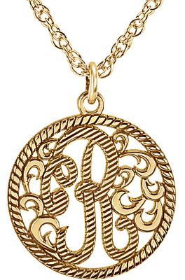 15mm Single Letter Script Monogram Necklace with Rope Border