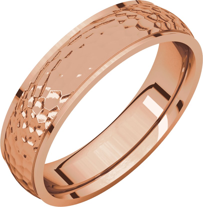18K Rose 5 mm Half Round Edge Band with Hammer Finish Size 14.5