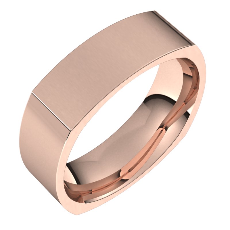 18K Rose 6 mm Square Comfort Fit Band Size 7.5