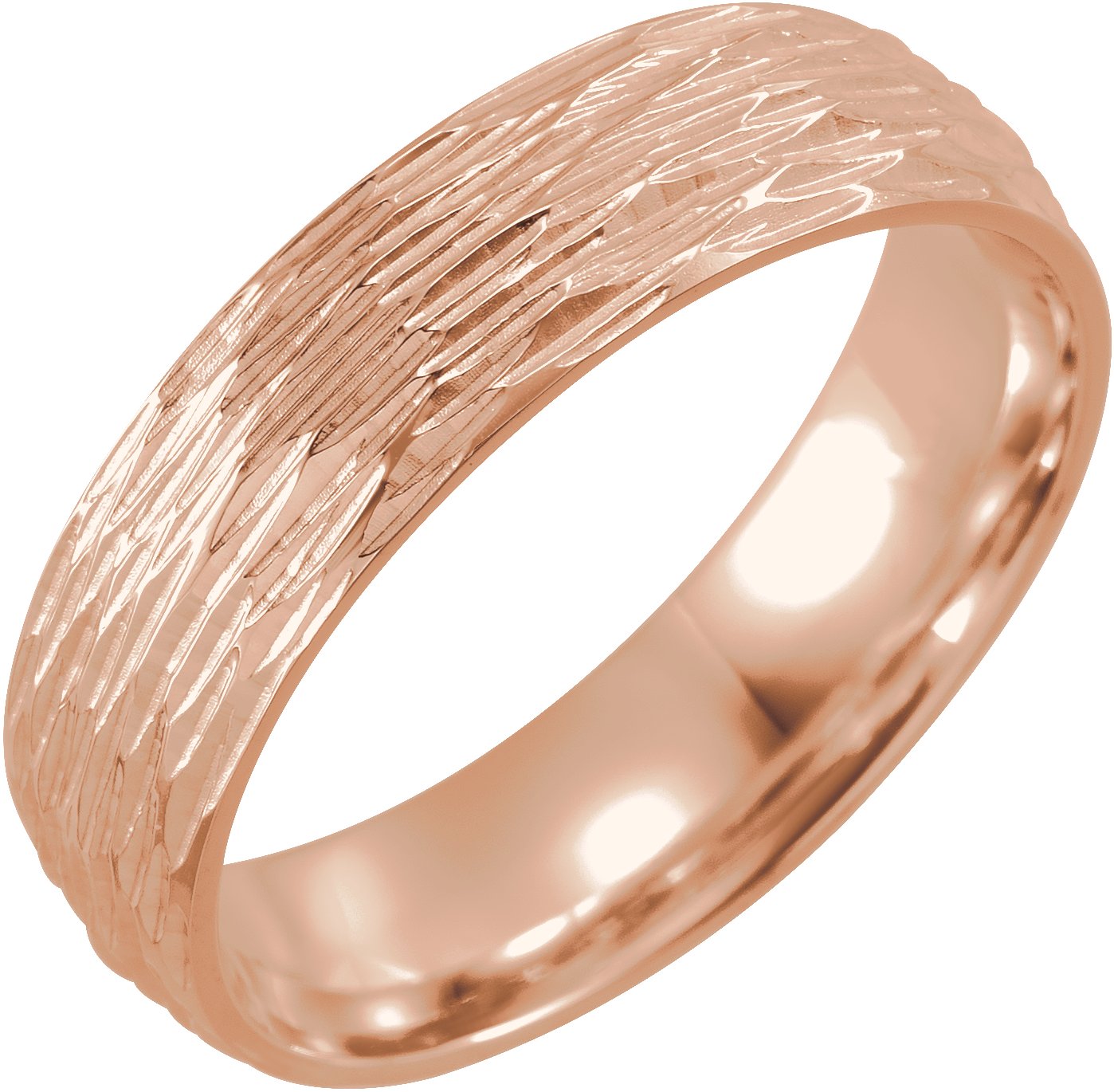18K Rose 6 mm Tree Bark Pattern Band Size 15