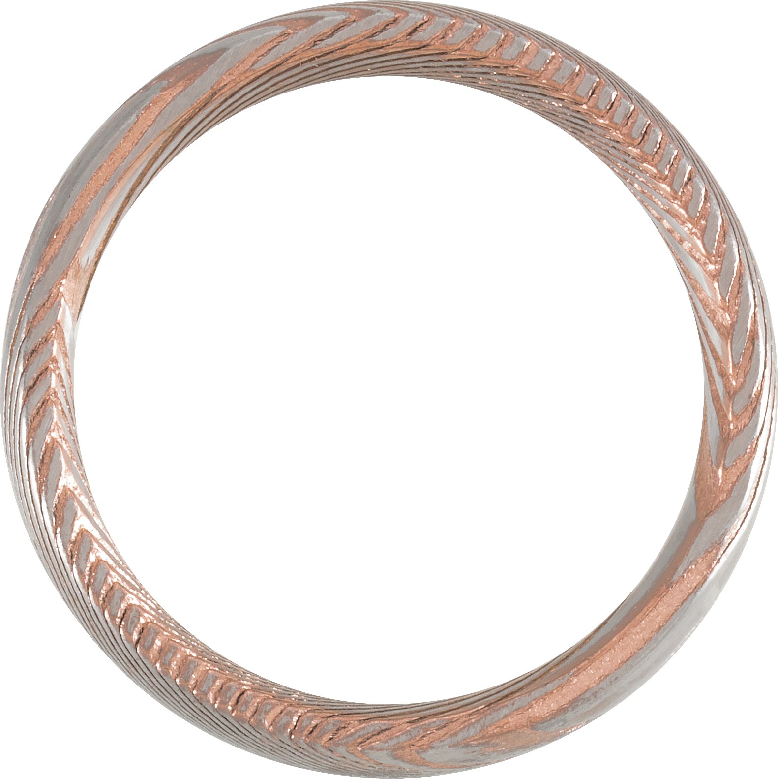 18K Rose Gold PVD Damascus Steel 6 mm Patterned Half Round Band Size 10.5