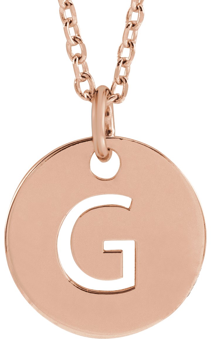 18K Rose Gold Plated Sterling Silver Initial G 10 mm Disc 16 to 18 inch Necklace Ref 17697377