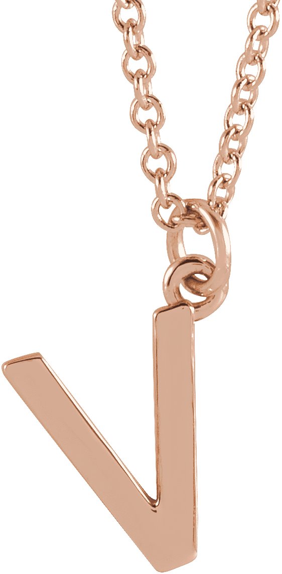 18K Rose Gold Plated Sterling Silver Initial V Dangle 18 inch Necklace