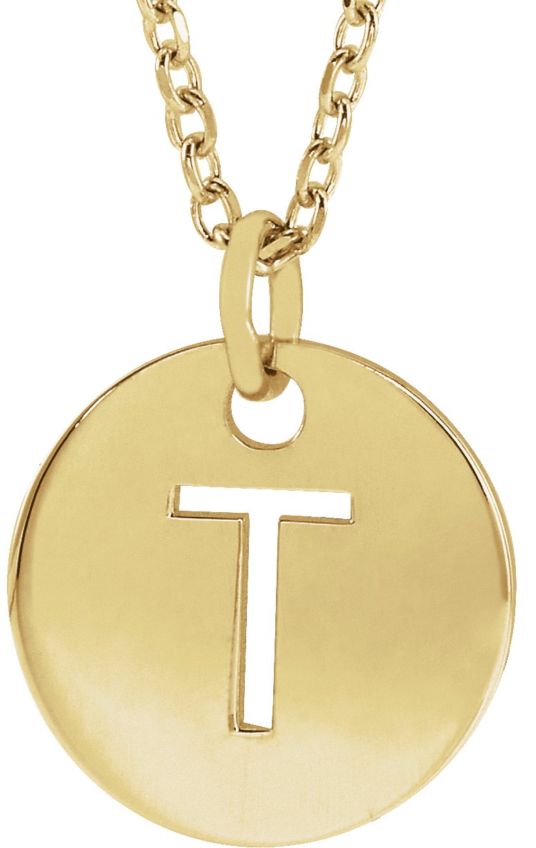 18K Yellow Gold Plated Sterling Silver Initial T 10 mm Disc 16 to 18 inch Necklace Ref 17697364
