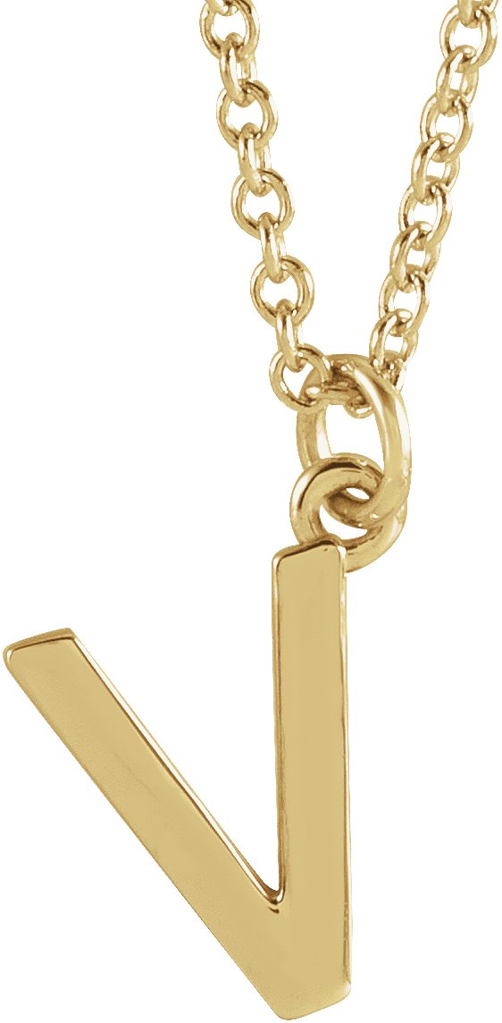 18K Yellow Gold Plated Sterling Silver Initial V Dangle 18 inch Necklace