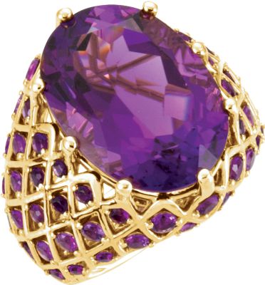 Matching Earrings: 85701 Matching Necklace: 85700 Set with: 1 18.00x13.00 MM AA Faceted, Genuine Amethyst - Oval Faceted; AA Quality 6 02.25 MM AA Faceted, Genuine Amethyst - Round Faceted; AA Quality 14 01.50 MM AA Faceted, Genuine Amethyst - Round Faceted; AA Quality 16 02.00 MM AA Faceted, Genuine Amethyst - Round Faceted; AA Quality 20 01.75 MM AA Faceted, Genuine Amethyst - Round Faceted; AA Quality
