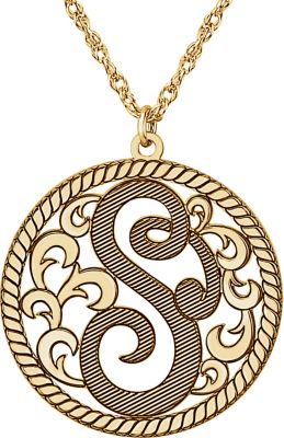 25mm Single Letter Script Monogram Necklace with Rope Border