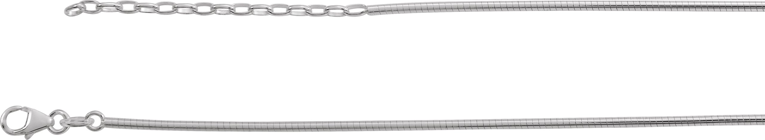 2 mm Sterling Silver Round Omega Chain with 2 Inch Extension & Lobster Clasp. 16-18 inch